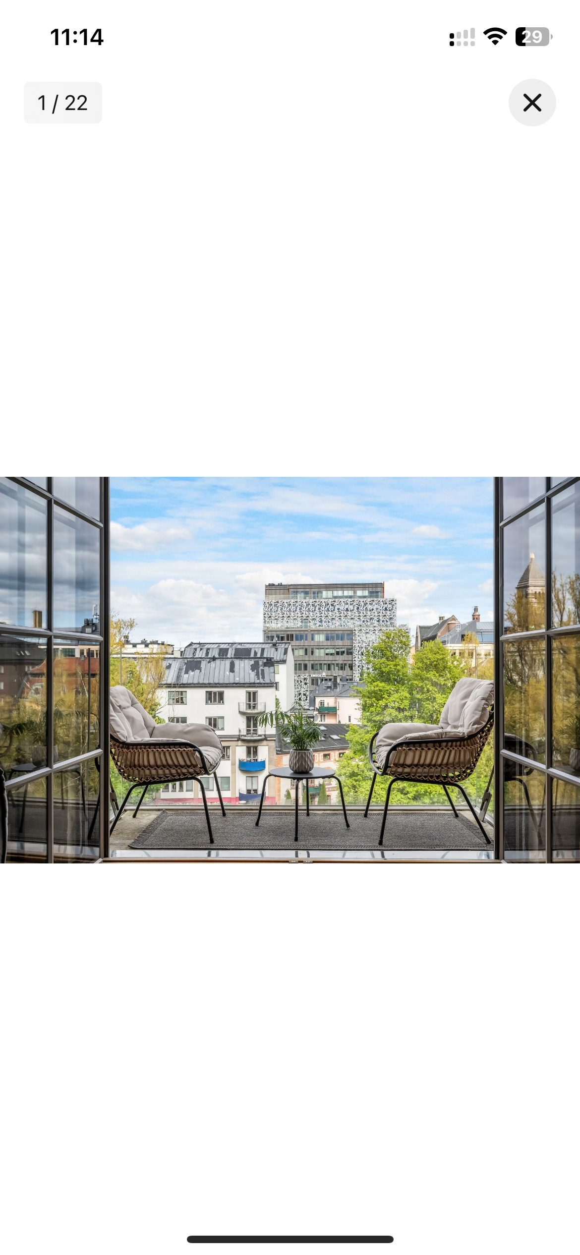 Lägenheten har en genomtänkt planlösning med ljusa, öppna ytor. De dubbla glasdörrarna leder ut till en balkong med utsikt över Strömmen och Strömsparken - en rofylld plats för morgonkaffet i solen. Köket är stilrent och praktiskt, med bra förvaring och arbetsytor. Vardagsrummet får ett fint ljusinsläpp från de stora fönstren, och sovrummet är rymligt och trivsamt. Det helkaklade badrummet är utrustat med tvättmaskin och torktumlare Vatten värme och el ingår i avgiften Våning 3 av 4
